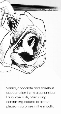 My reference point is in fact vanilla ice cream, which I constantly explore, abandon and rediscover, and that serves as the base for my taste in pastry and ice creams. Textures allow me to create stages in the tasting of a cake, stages which lead to a final flavour that is the heart of my creation. Finally, I never stop recreating vanilla cream…