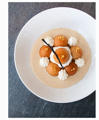 Et voilà comment ma vie prend un nouveau tournant et me met aux fourneaux d’un chef d’exception. Nous discutons beaucoup de sa cuisine, de nos envies, de nouveaux accords complexes, d’inspirations et nous cherchons… Résultat des desserts raffinés, inédits, résolument différents qui viennent au fil des semaines enrichir les cartes de ses restaurants à Valence, Lausanne et Paris. Un dialogue riche de rebondissements et d’exquises douceurs à déguster…